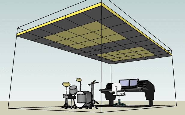 Ha ezt teljes felületében tudjuk csillapítani, elég sok alacsony frekvenciájú hangenergiát tudunk vele megfogni! Építőanyag kereskedésekben beszerezhetünk akusztikai gipszkarton álmennyezeti lapokat (pl. Rigips Rigiton AIR, vagy Knauf Cleaneo), amik fölé kőzet- vagy üveggyapot lapokat téve tovább növelhetjük a basszuscsapdánk hatékonyságát. Bizonyos lapok már eleve egy porózus elnyelő anyaggal vannak a hátlapjukon kasírozva. Ezeket a lapokat akár a falra is szerelhetjük, és kiváló esztétikai hatást nyújtanak!